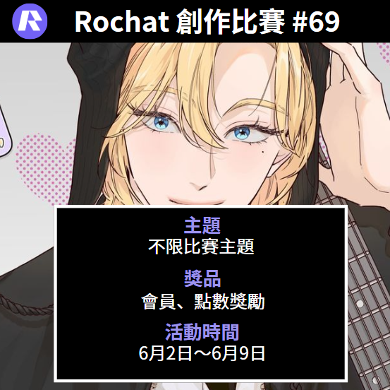 加入我們的 Discord,並在 🤖|rochat-內容分享 頻道中分享您創建的角色並附上 #contest 69的標籤。